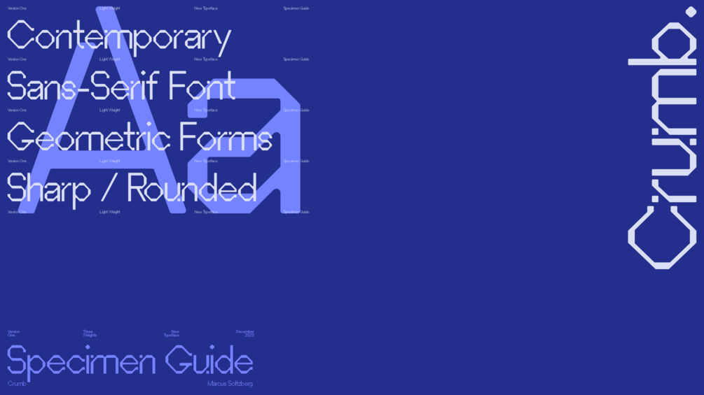 Crumb is a contemporary, geometric typeface that contains 170+ glyphs (x3 different weights), accents, and numbers - as well as special and alternate characters.